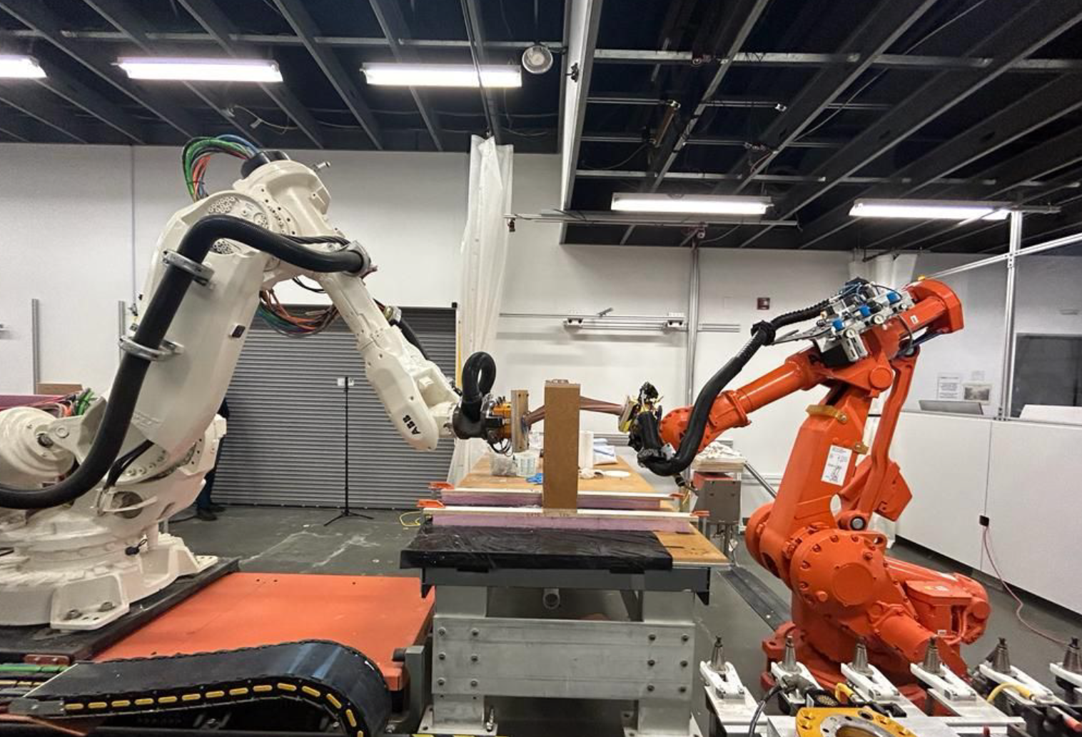 This course provides a practical, hands-on introduction to the application of industrial robotics in architectural and related construction domains. It also provides students with the necessary knowledge and safety protocols to work in the architectural robotics lab at CMU SoA. Through lectures, labs, and project work, students learn the industrial robotic fundamentals of online programming, off-line programming, simulation, end-of-arm-tool (EOT) development, work cell development, and interacting with peripheral sensors.